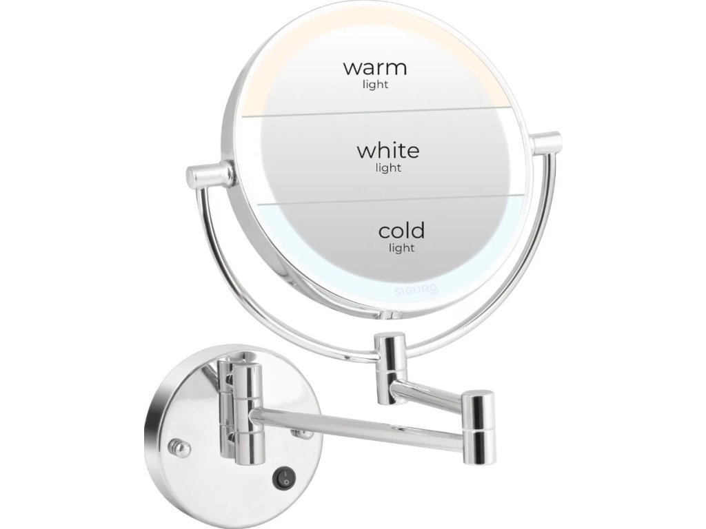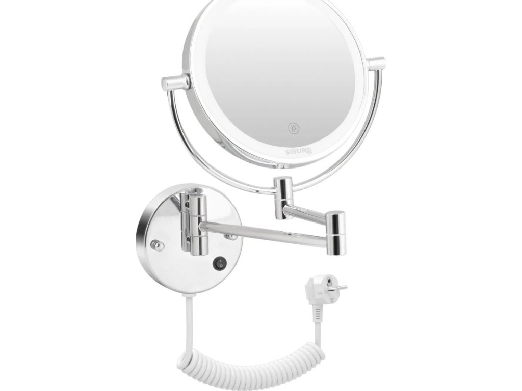 Nástěnné oboustranné kosmetické zrcátko Siguro LM-T760SU Pure Beauty Genevieve zaujme kromě nerezového provedení také dvěma 360° otočnou zrcadlovou plochou – na každé straně s jiným zvětšením a vlastním nastavitelným LED osvětlením. Navíc díky možnosti připevnění na zeď a kloubovému ramenu je zrcátko dokonale nastavitelné téměř do jakékoliv polohy a představuje perfektního pomocníka pro rovnoměrné nanesení make-upu, dokonalou úpravu obočí do požadovaného tvaru i nanášení hydratační masky či krémů. V neposlední řadě oceníte nádherný design kombinující nerezovou ocel a sklo – stane se nezbytnou součástí vašeho kosmetického koutku, a jelikož se disponuje krytím IP44, tak i koupelny.