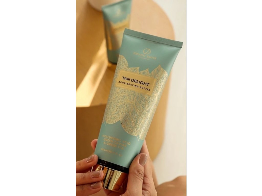 Tan Delight je urychlovač opalování ve formě lehkého másla ze série Golden Collection – prémiové řady, která kombinuje sofistikované složení s výjimečnou estetikou. Každý produkt zaujme elegantním balením, které nejen přitahuje pozornost, ale zároveň poskytuje smyslový zážitek. Stylová prezentace je poutavá a dlouho zapamatovatelná.