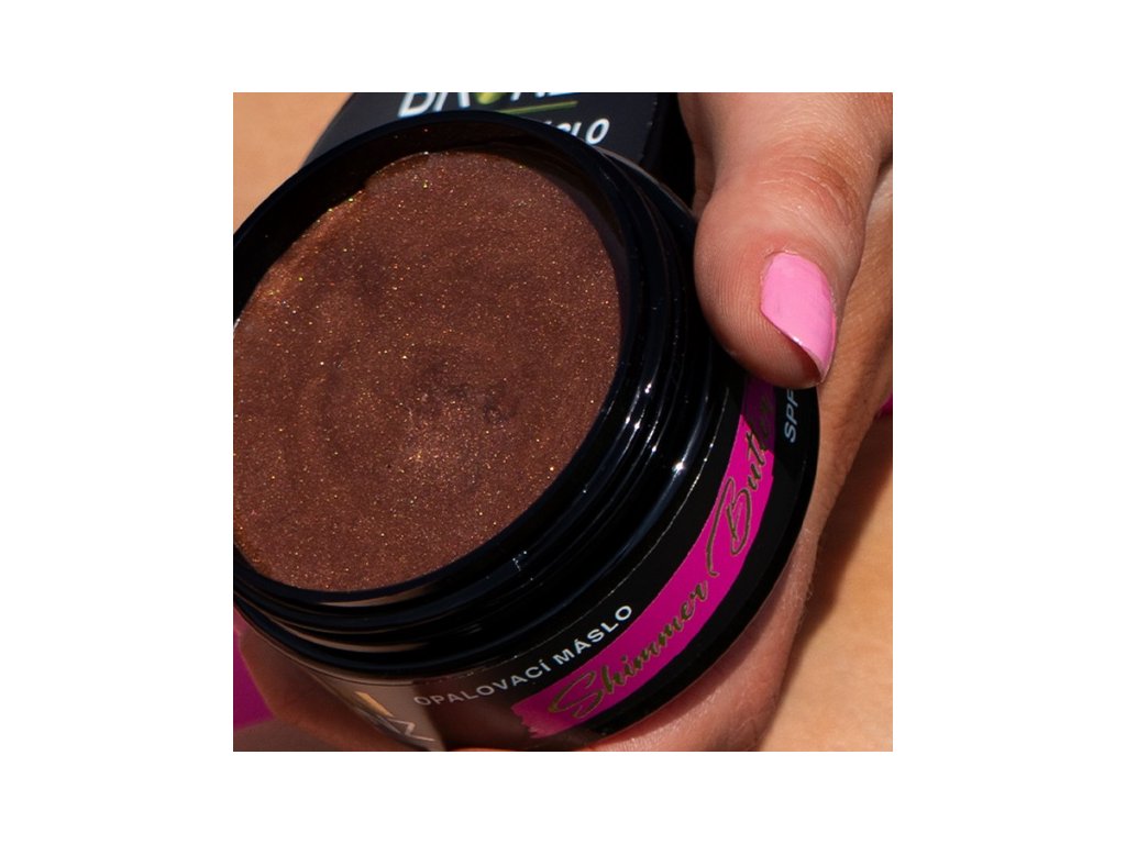 Opalovací tělové máslo s bronzerem a třpytivým efektem SPF 6. Pro intenzivní zhnědnutí pokožky a zvýraznění bronzového opálení. Směs pigmentů s perleťovým efektem dodává pokožce zářivý a jednotný vzhled. Fotostabilní UVA/UVB filtry poskytují zvýšenou ochranu před nežádoucími účinky slunečního záření. Zjemňující arganový a kokosový olej chrání před vysušováním a stárnutím pokožky. Voděodolné.