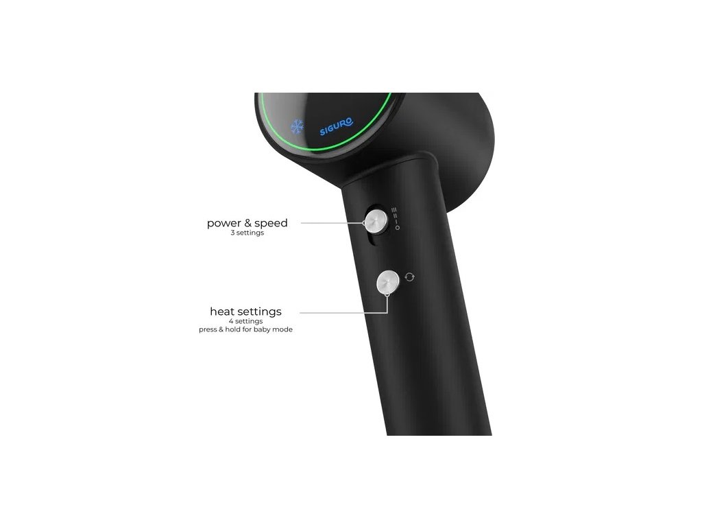 Siguro I450B Twilight Flow disponuje kvalitním bezkartáčovým (BLDC) motorem s výkonem 1 500 W a až 101 000 otáčkami vytváří silný proud vzduchu pro rychlé vysušení. Rychlost lze regulovat pomocí tlačítka na rukojeti ve 3 úrovních – nízká, střední a vysoká. Aktuálně nastavená rychlost je signalizována příslušnou ikonou na displeji.