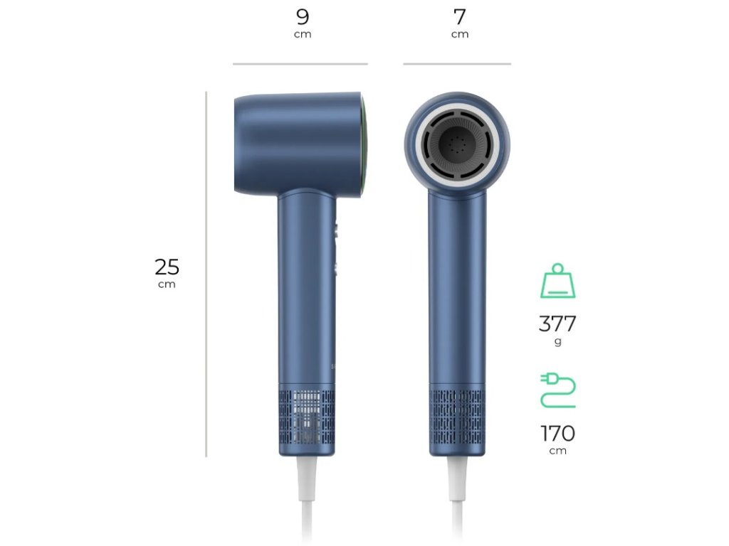 S fénem na vlasy Siguro HR-I450D Ocean Flow, který je vybavený celou řadou praktických funkcí, dosáhnete perfektních výsledků. Fén nabídne ionizátor, 4 teplotní stupně, 3 rychlosti proudění vzduchu, režim Baby Care, displej či odnímatelný magnetický filtr. Jistě oceníte tišší chod v porovnání s ostatními fény, odlehčené provedení a kompaktní rozměry, díky čemuž nezabere mnoho místa a fén si můžete bez problémů vzít s sebou na cesty. Součástí balení je koncentrátor.